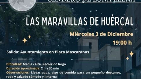 Este miércoles 3 de diciembre a las 19:00 horas se llevará a cabo el Sendero de Luna Llena: “Las Maravillas de Huércal”, que partirá desde…