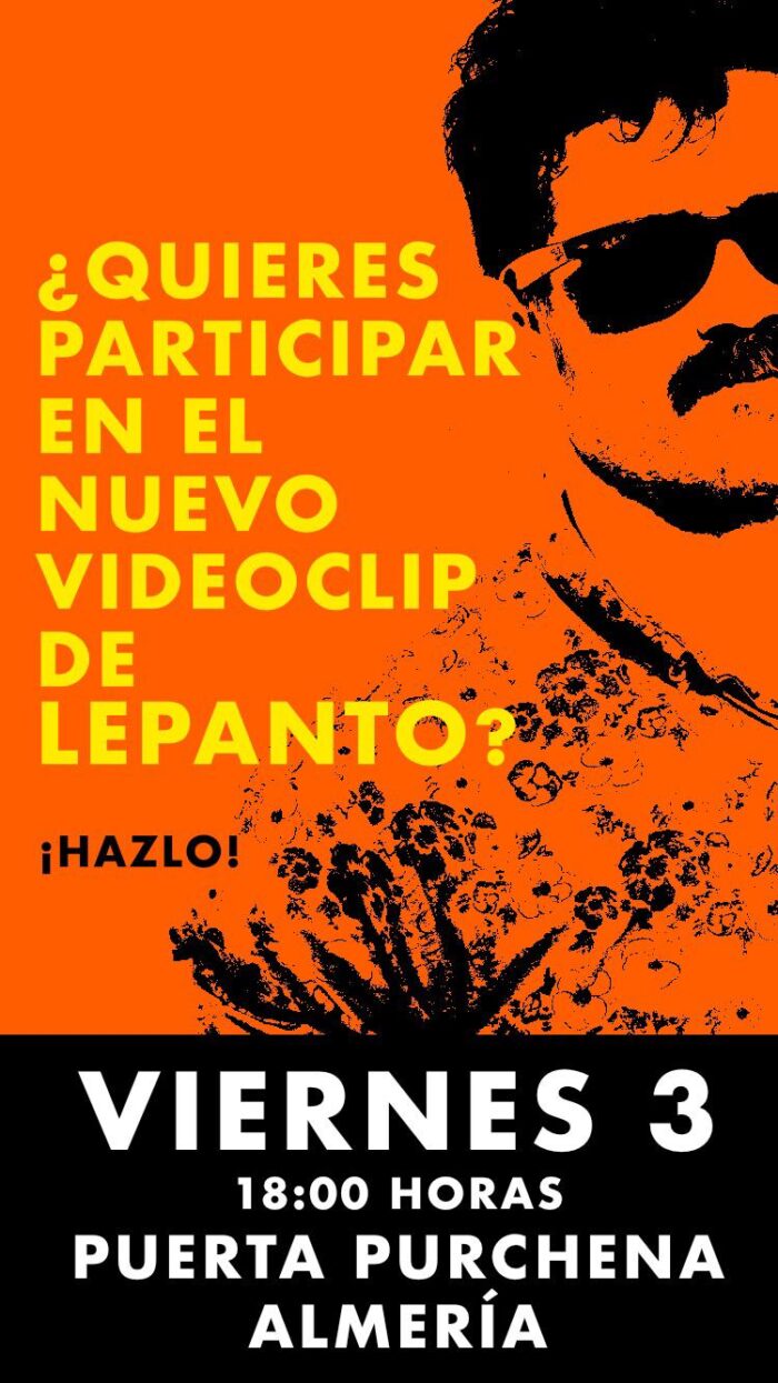 Es el Aviso de Video Clip, en el corazón de Almería de Manu, es decir, LEPANTO de cara al viernes 03 de junio, desde las 18.00 horas en Puerta de Purchena el inicio de HAZLO!.