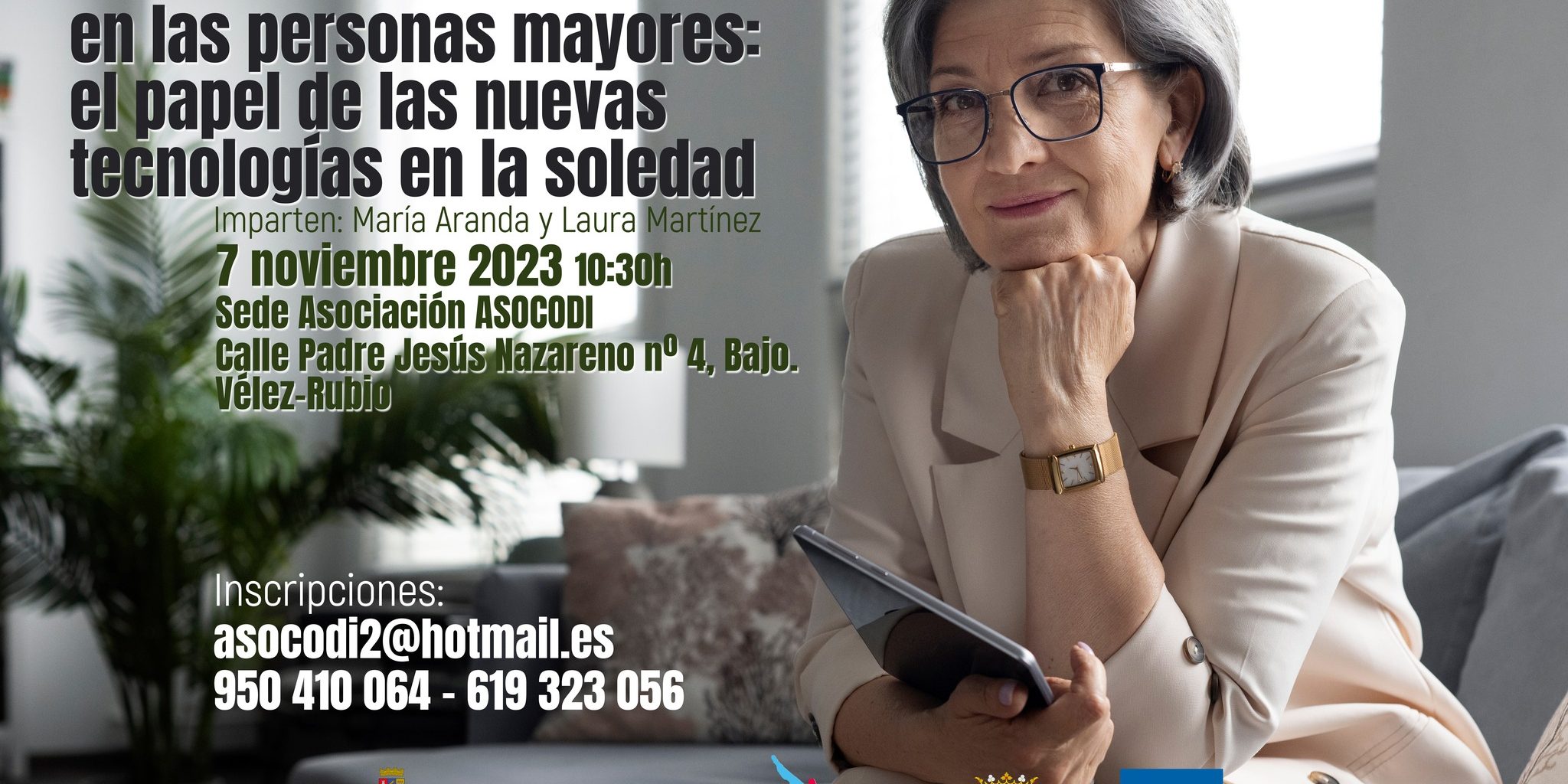 En el marco del proyecto CONTIGO financiado a través del Consejo Provincial de Familia de la Diputación de Almería comenzamos mañana la programación de talleres y charlas que recorrerán la provincia atendiendo la demanda y necesidades de los socios/as de las asociaciones miembro de FAAM. La primera de ellas se desarrollará en Vélez Rubio de la mano de ASOCODI y en ella se hablará sobre el papel de las nuevas tecnologías en la prevención de la soledad.