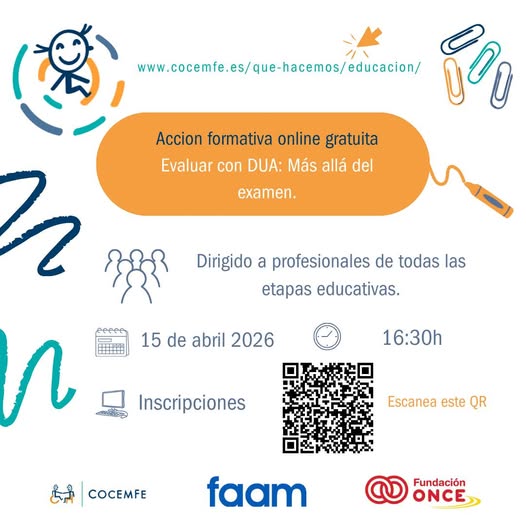 Desde FAAM y a través del proyecto de educación ejecutado vía COCEMFE realizaremos una sesión virtual gratuita dirigida a profesionales de centros educativos de toda etapa educativa sobre “Evaluar con DUA: Más allá del examen”.
