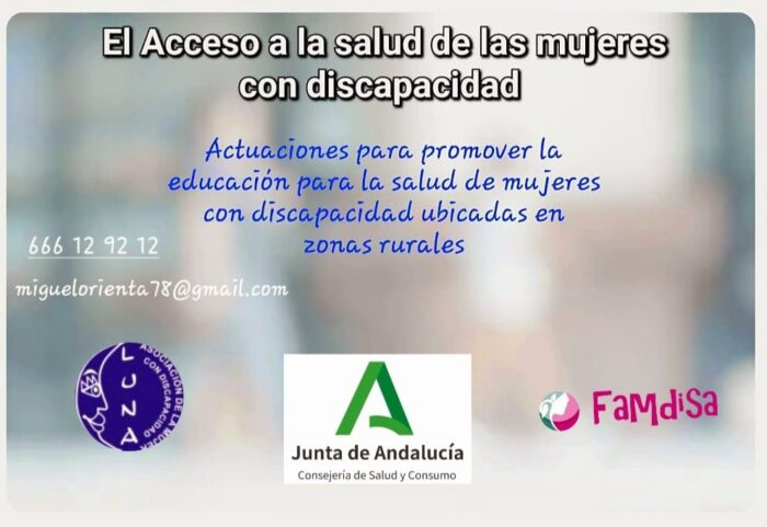 Comienzan los Talleres «El acceso a la salud de las mujeres con discapacidad» subvencionados por la Consejería Salud y Consumo. Ponte en contacto con nosotras, si quieres participar. También si eres asociación o ayuntamiento y quieres que lo realicemos en tu municipio.