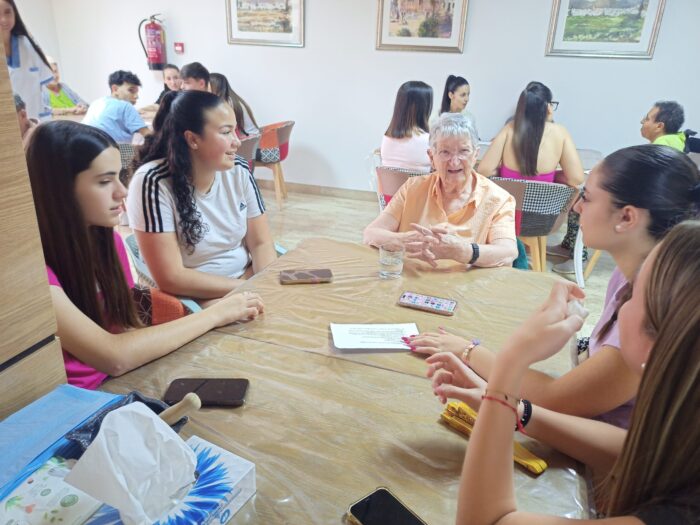 Las alumnas y alumnos de 4º de ESO de Música les hacen una pequeña entrevista sobre tradiciones, bailes, canciones y refranes a los ancianos del Centro de Estancias Diurnas «América» de Alhama de Almería.