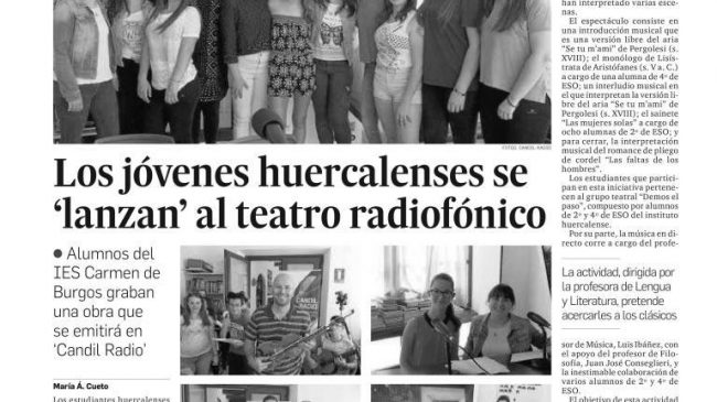 Teatro clásico en Candil Radio a cargo del Ies Carmen de BurgosAqui las fotosEscucha aqui la grabación en audio